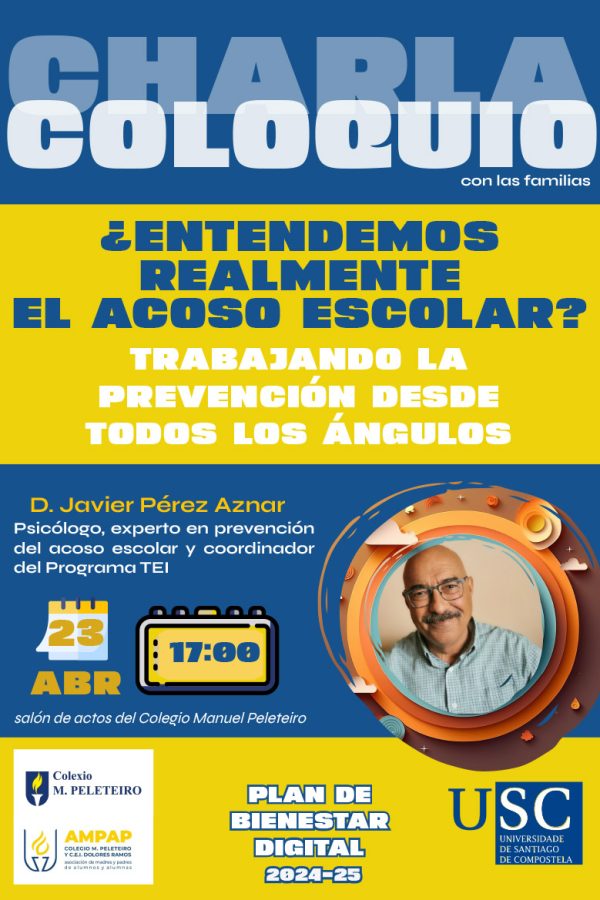 En la cuarta y última sesión con las familias se abordó uno de los temas que más preocupación suscitaba: el acoso es colar y el ciberacoso. Para ello pudimos contar con una de las personas de mayor experiencia en este campo en España, Javier Pérez, expresidente y fundador de la Asociación No al Acoso y actualmente coordinador del programa TEI (Tutorías entre Iguales).
